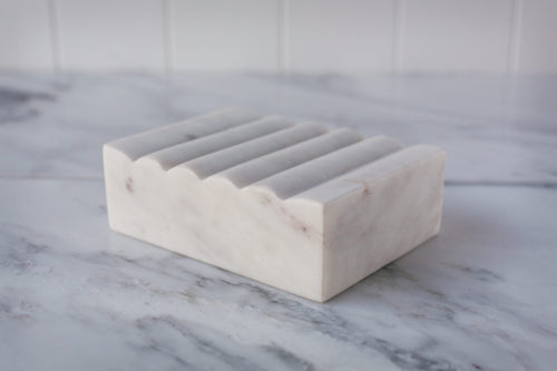 Marble - White Scalloped Marble Soap Dish